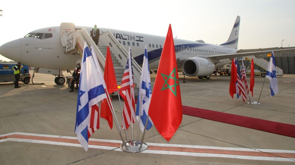 أقلعت أول رحلة جوية مباشرة بين دولة إسرائيل والمملكة المغربية، من مطار بن جوريون هذا الصباح وتحمل على متنها وفدًا أمريكيًا رفيع المستوى برئاسة جاريد كوشنر، مستشار الرئيس الأمريكي دونالد ترامب، ووفدًا إسرائيليًا به عدد من المسؤولين البارزين.
