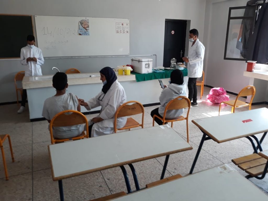 أعطيت صباح امس الخميس 23 شتنبر الجاري بالثانوية التاهيلية المجد إنطلاقة قافلة تلقيح تلاميذ الفئة العمرية من 12 الى 17 سنة في اطار الحملة الوطنية للتلقيح ضد كوفيد 19.