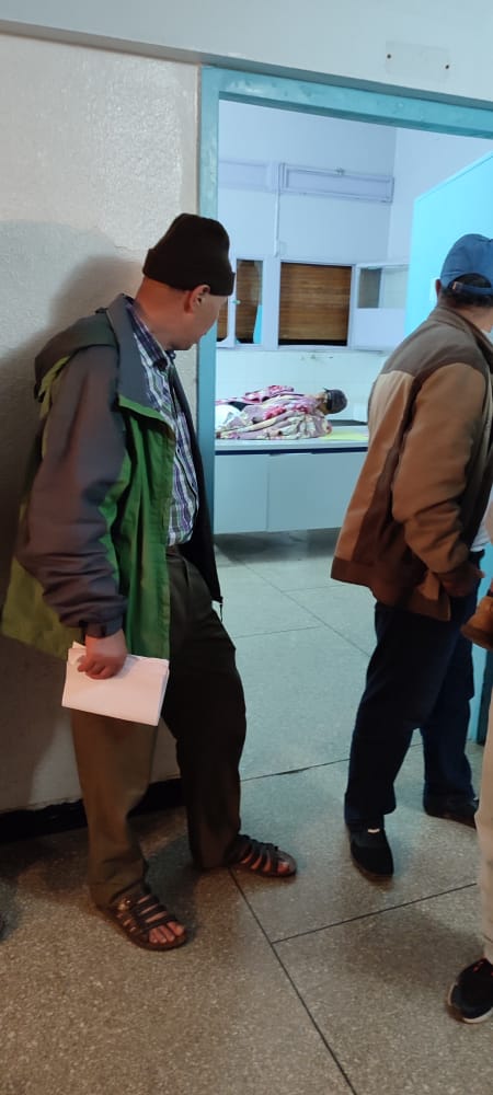 ويبدو أحد المرضى الذي لم يجد سريرا من أجل الكشف عن حالته, حيث ما كان أمامه سوى أحد المكاتب الخشبية التي إتكأ عليها وأوكل أمره لله عز وجل حتى تتسنى له فرصة التطبيب, وقد بدت نظراته تلخص كل شيئ.