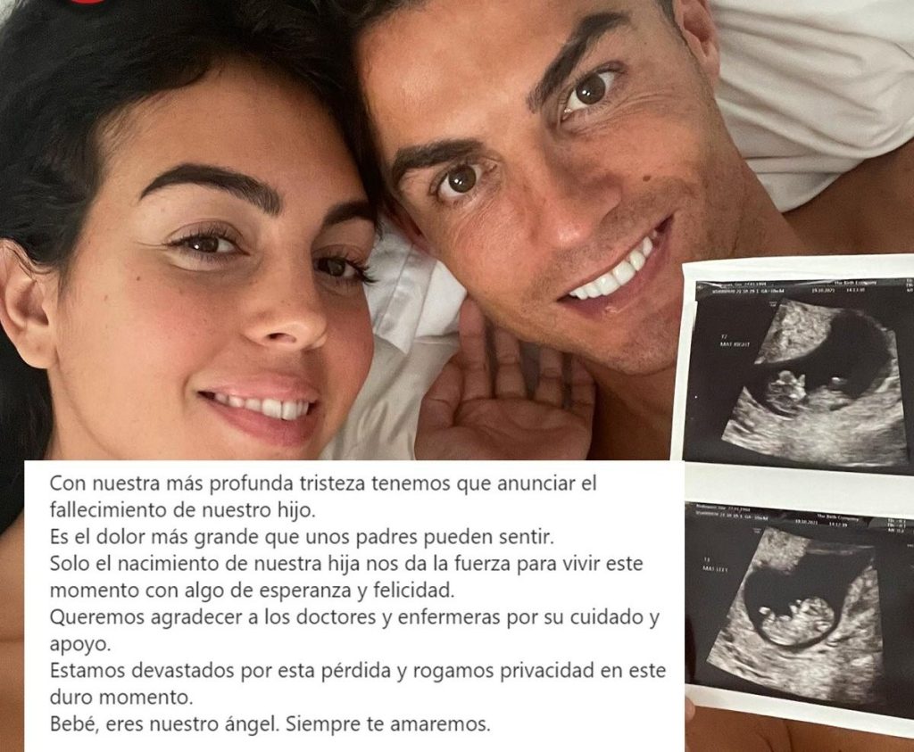 وذكر رونالدو في تدوينة مشتركة مع صديقته جورجينا رودريغيز عبر وسائل التواصل الإجتماعي، “بحزن عميق نعلن أن ابننا الرضيع توفى. إنه أكبر آلم يمكن أن يشعر به أي والديْن”.