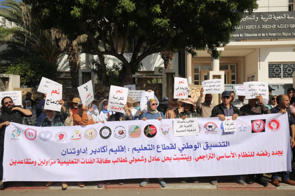 أكادير : أساتذة التعليم يحتجون أمام الأكاديمية الجهوية