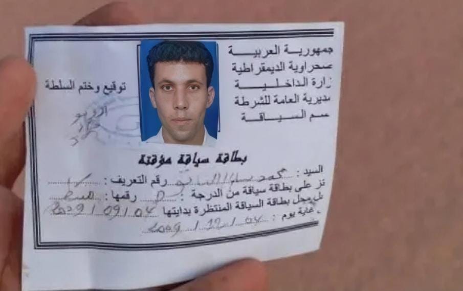 بين متعلقات الجثة الشخصية، برزت وثيقة ذات دلالة خاصة، وهي رخصة قيادة مؤقتة. صدرت الرخصة في 2009 عن جهة وُصفت بـما يسمى «مديرية شرطة البوليساريو» بمخيمات تندوف.
