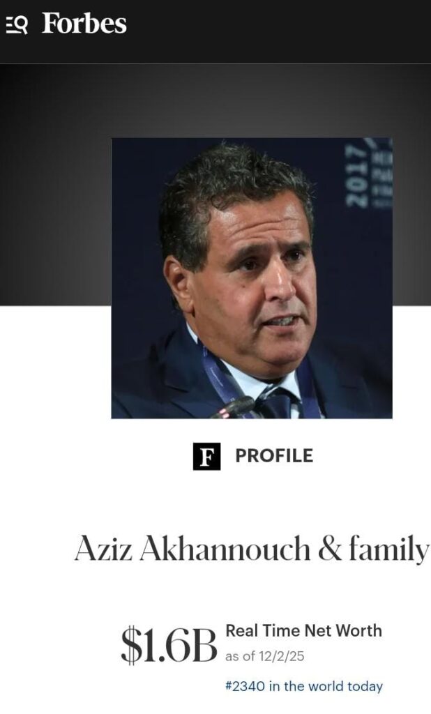 لا يتوقف الجدل حول ثروة عزيز أخنوش، رئيس الحكومة، خاصة مع تكشف أرقامها الجديدة. اليوم، أفادت بيانات حديثة أن ثروة أخنوش قد نمت بما يقارب مئة مليون دولار في فترة وجيزة.