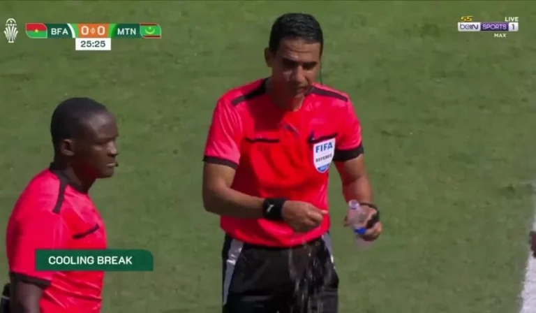 بسبب الحرارة.. حكم مغربي يوقف مباراة موريتانيا وبوركينافاسو لشرب المياه